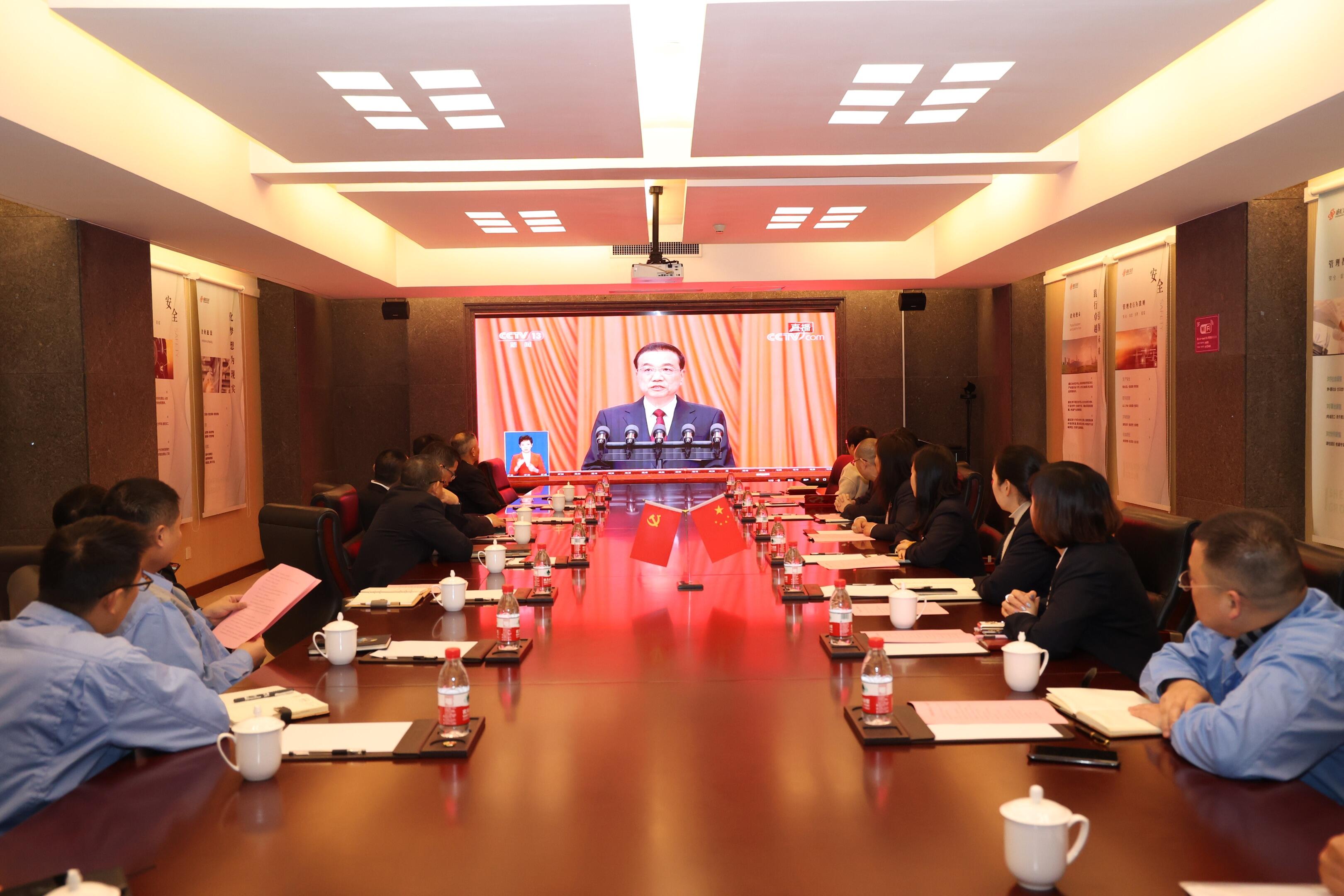 在集团总部会议室,两代表一委员、劳模、部分党员和职工代表,集中观看了十四届全国人大一次会议开幕会,认真聆听、学习政府工作报告。大家对过去五年我国经济社会发展取得举世瞩目的重大成就和我国发展取得来之极为不易的新成就感到振奋、备受鼓舞,更加增强了推动经济高质量发展的信心和干劲。